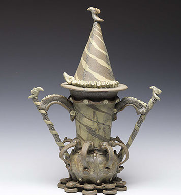 Anyone who works in clay is confronted with a multitude of possibilities. Complexity and surprise are built into the medium, process, and technology. Take one purposeful step down an artistic path, and you’re immediately face-to-face with a crossroads that wasn’t on your mental GPS. Should you keep going straight —or what the hell, wouldn’t it be more fun to turn left or right and see what you run into? Exploring the unexpected sideroads has always appealed to me. It’s like going on a walkabout. As a teacher, I always tell my students to “try it and see what happens.” This is my own artistic mantra.