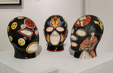 The mask idea was derived when I happened to come across Mexican professional wrestlers with colorful masks when I was switching TV channels. My ideas are the reflection of current cultures, such as superhero movies and animation, internet Emoji explosion, and Japanese comic imports.
