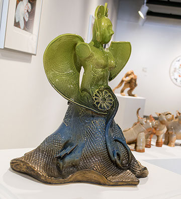 Incorporating my love of comic books and science fiction, I’m creating ceramic sculptures that are humorous, thought-provoking, and beautiful. It’s a joyful, toy-like world, filled with futuristic vessels and ruled by the gods who hold sway over its inhabitants.