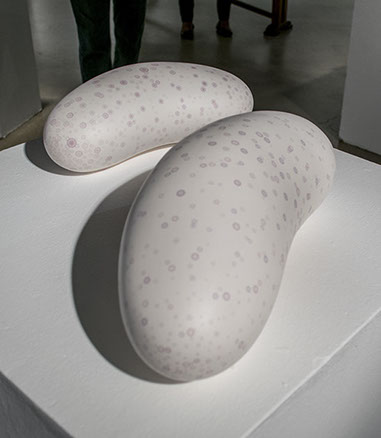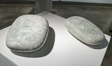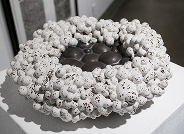 My glazing process enhances the natural aesthetic of the order and randomness. Thinly glazed surfaces highlight the macro-patterns and reveal the stoneware clay’s micro-texture created during the expansion process. I often use multiple glazes to intensify the dynamic tension of the surface.