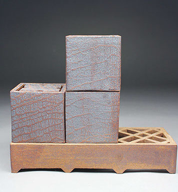 My aesthetic wanderings have been guided by the works of the ancient Minoans, Etruscans, Greeks, and Romans; by Japanese ceramic traditions, Jomon, Haniwa, Iga, Bizen, and Oribe; by artists like Gauguin, Miró, Picasso, Motherwell, Pollock, and George Ohr; and by the ideas of minimalism and other art movements. My modes of working in clay encompass drawing, painting, and printing, as well as handbuilding, moldmaking, and throwing — if only, sometimes to smash a pot on the wheel or to engineer its collapse.