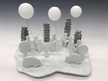 Shattered Family from the Refugees Series, 2017 cone 10 stoneware, mixed clay bodies, glazed with soda ash